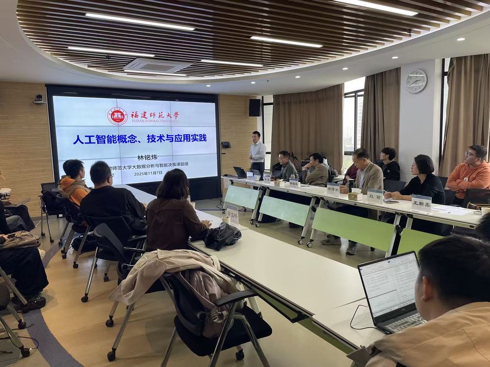 2025年11月7日,福建师范大学林铭炜教授应邀来中心开展了以“人工智能概念、技术与应用实践”为主题的学术讲座,本次讲座由四川大学郑远航教授主持。